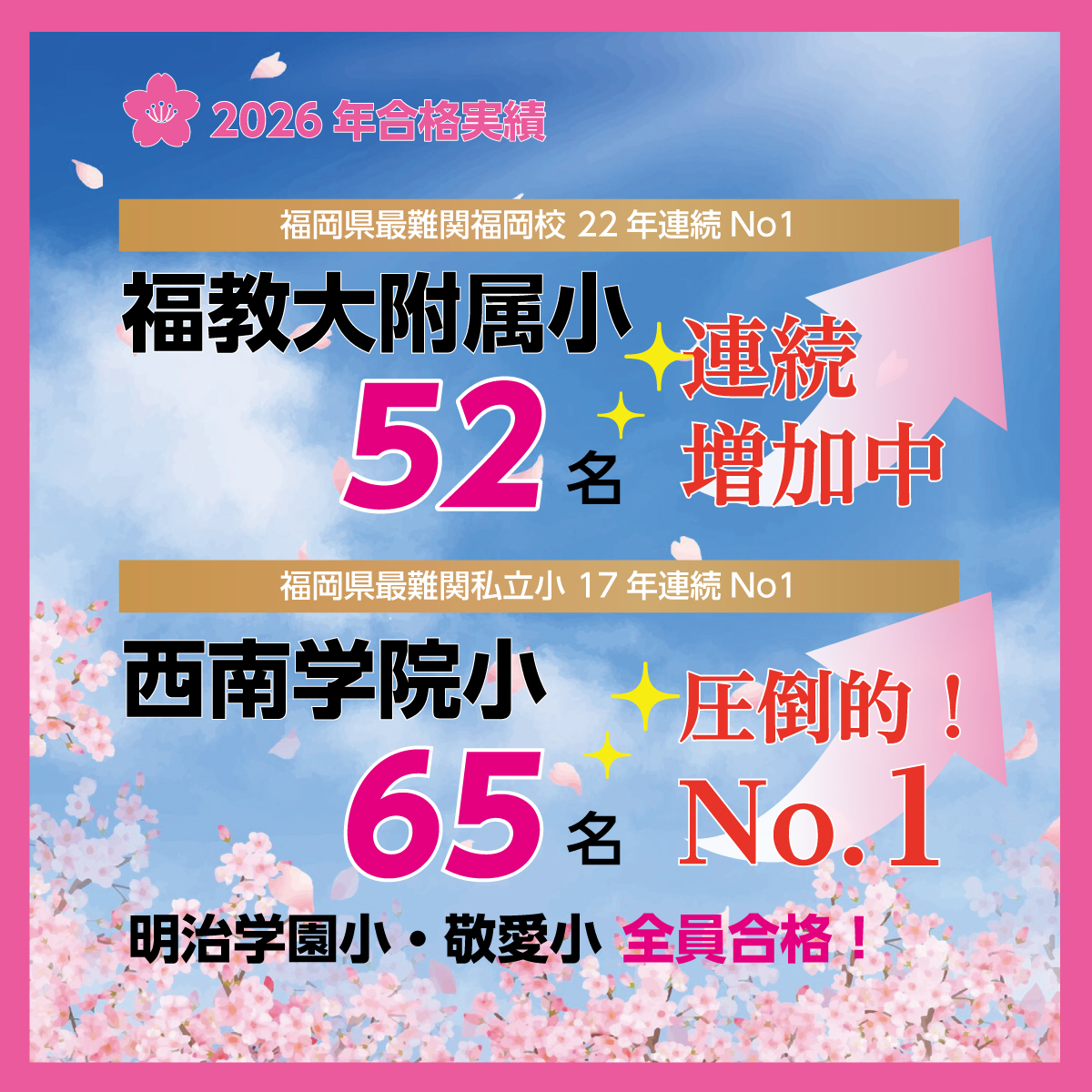 福岡教育大附属小学校、西南学院小学校、雙葉小学校をはじめ、
