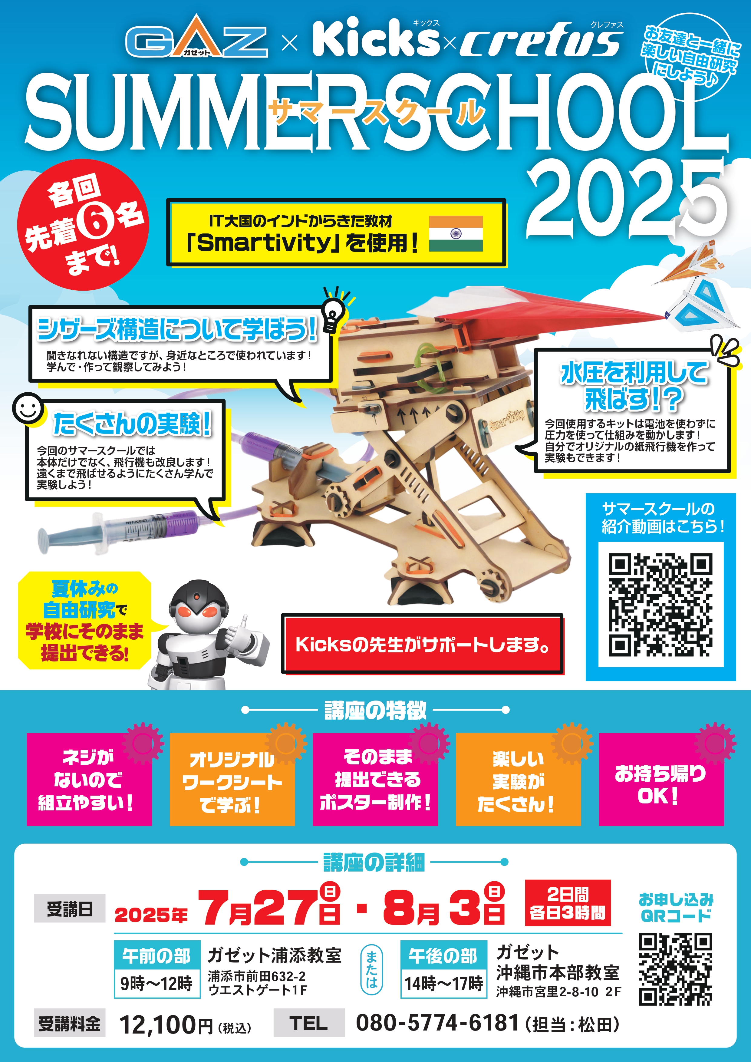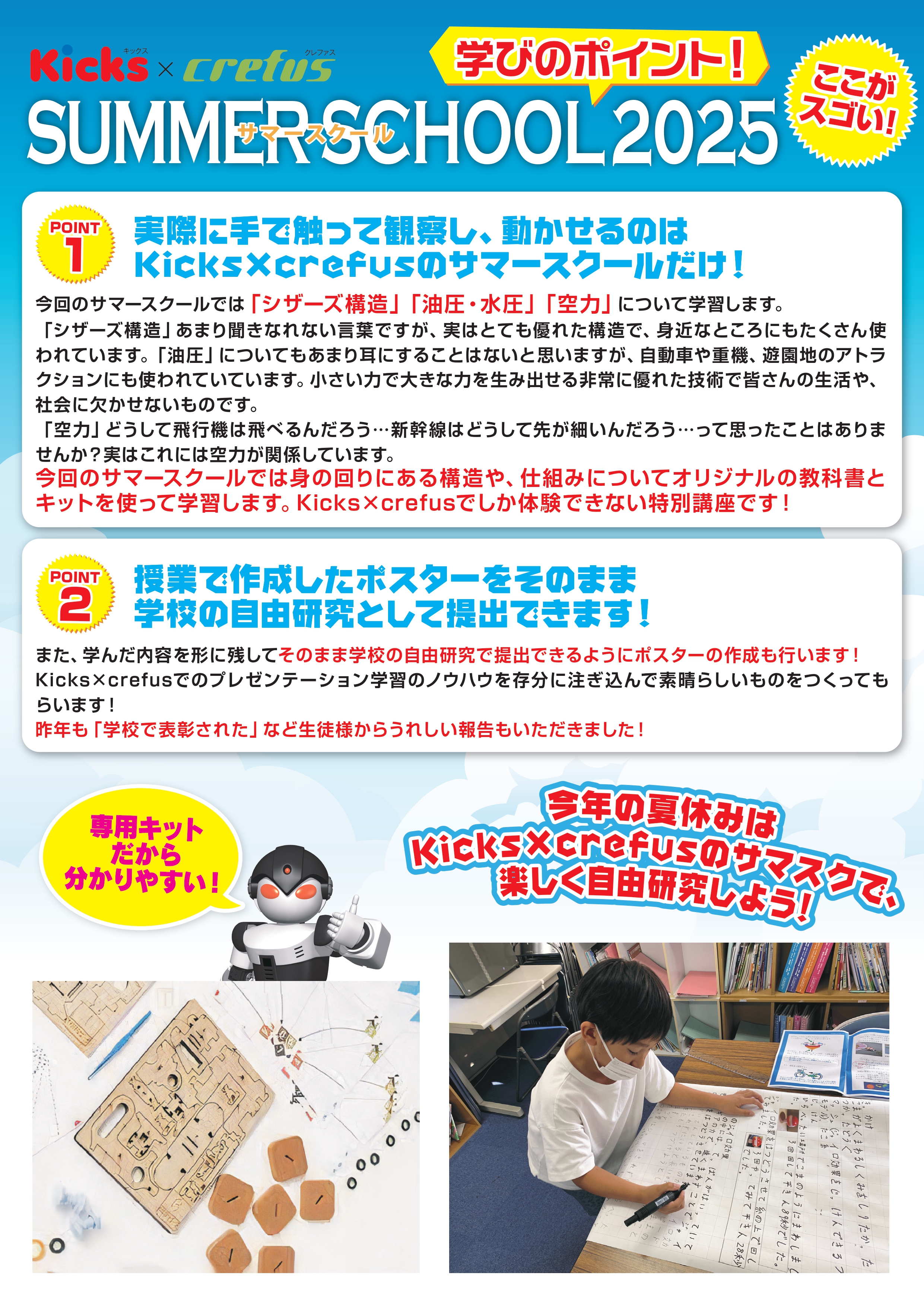 県内3拠点でプログラミング教室を運営する「kics×crefus」出張講座「サマースクール」を7月27日(日)、8月3日(日)の全2日間で開催します!