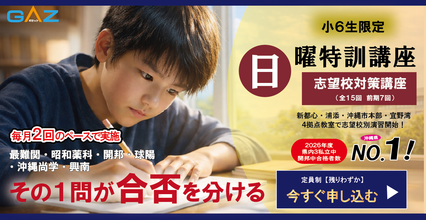 「最難関中、昭和薬科、球陽中、沖縄尚学、興南 対策」の専門講座を通じて、頻出単元や必須問題を厳選し、